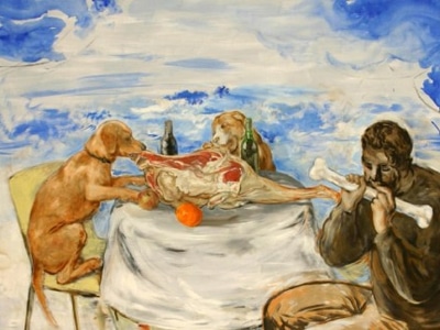 dingen en mensenvlees inzoomt. En hierdoor ontstaat een rare mengeling van figuratieve schilderkunst en de opzettelijke, expressionistische